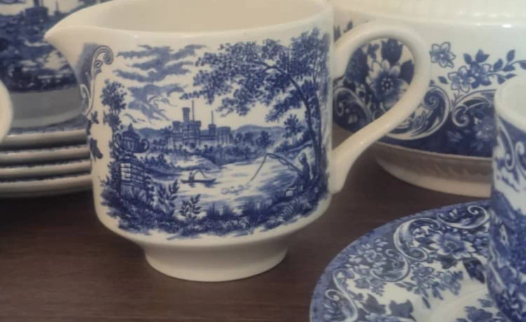 سرویس چایخوری انگلیسی ۶ عدد فنجان ۶ عدد نعلبکی یک عدد قندان بدون درب یک عدد شکر ریز یک عدد قوری
